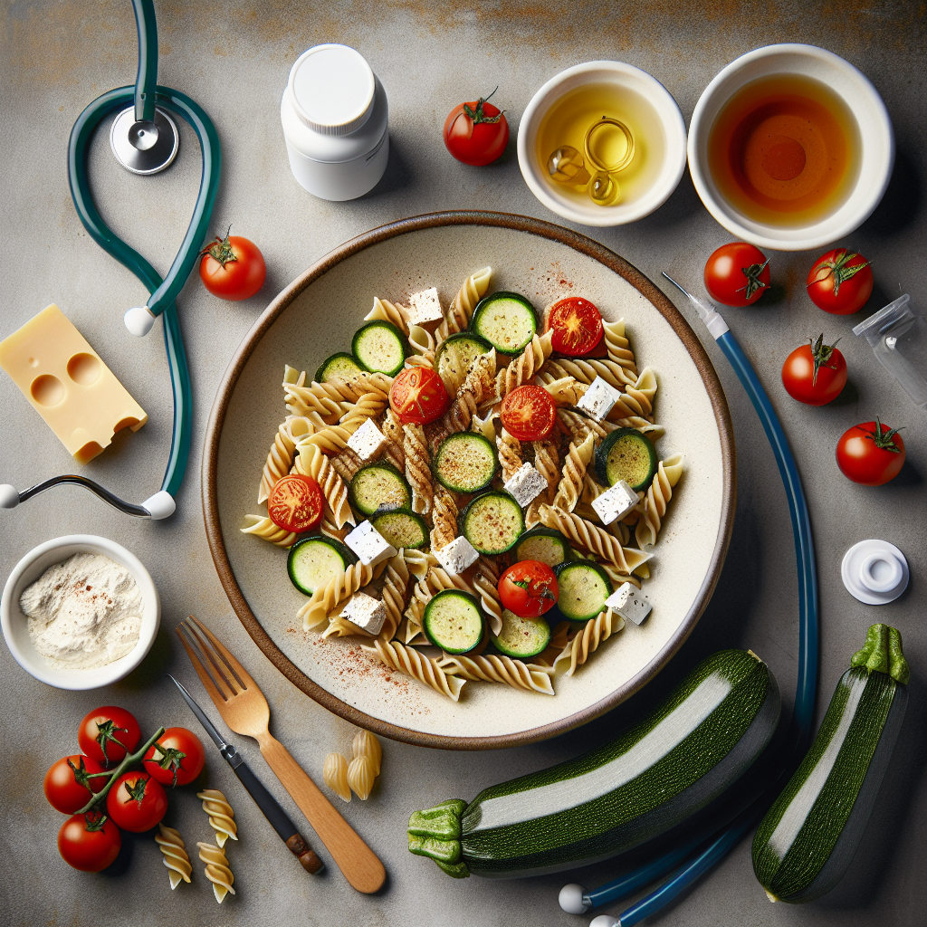 Pasta integrale con zucchine, pomodorini e feta a basso indice glicemico